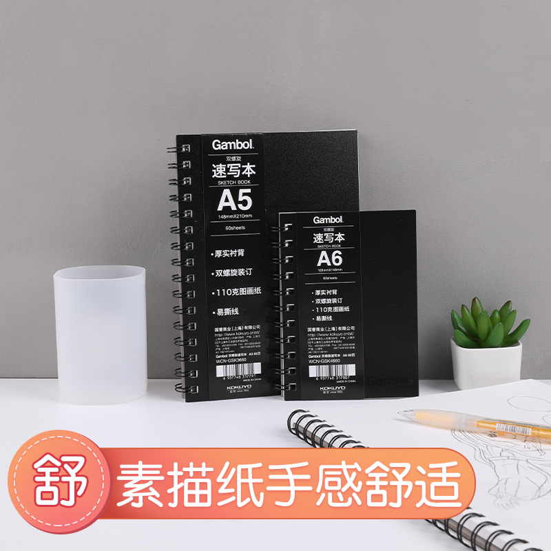 日本kokuyo国誉速写本素描本绘画本Gambol双螺旋PP封面速写本美术学生专用素描记事本侧翻空白本子A6