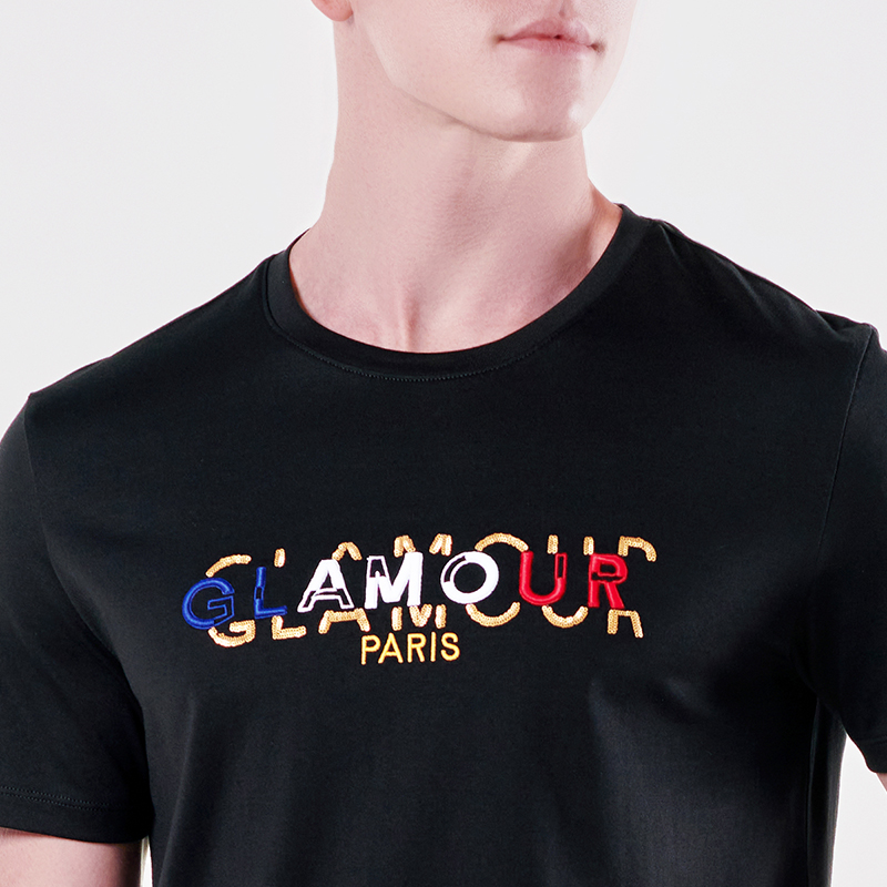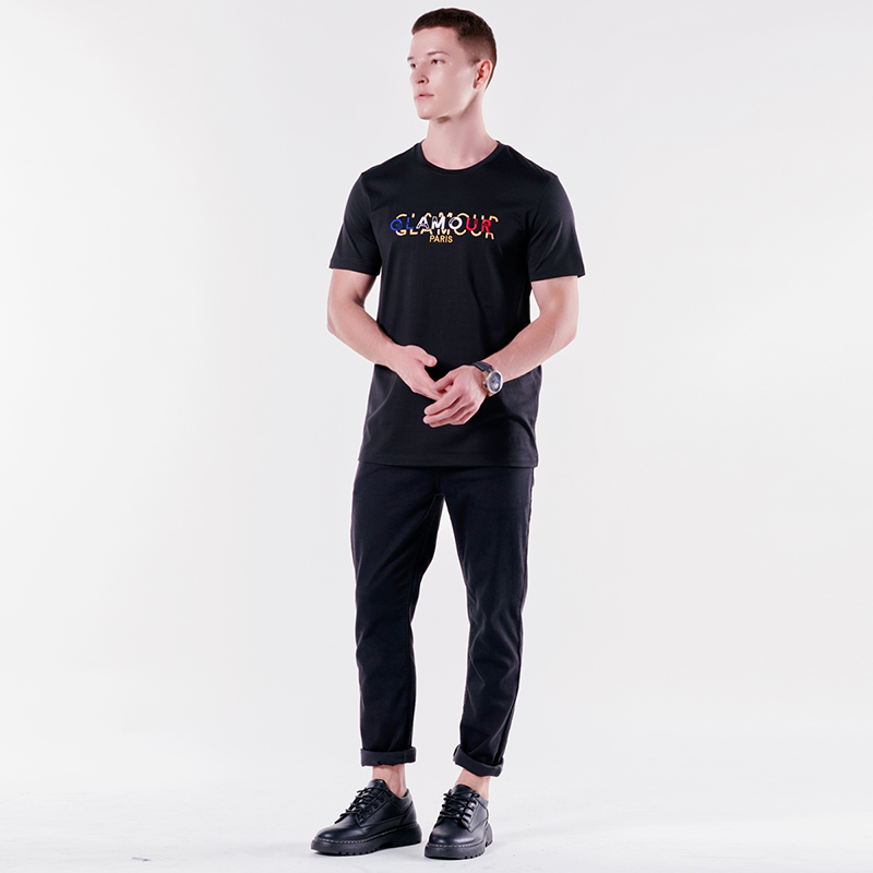字母刺绣亮片圆领修身 奢侈品半袖 T恤男 2025新款 HELLEN&WOODY男装