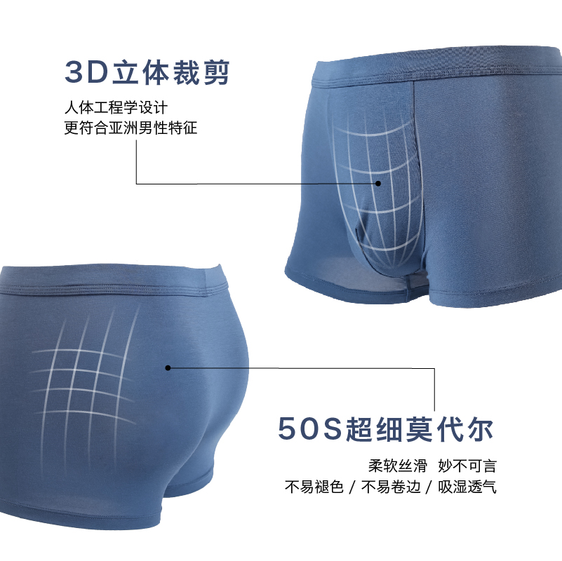 冰丝透气四角短裤 3件 莫代尔大码 平角内裤 男生 蕉内银皮500E男士