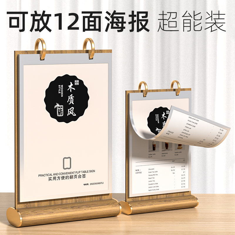 翻页台卡前台桌面展示牌pvc菜单活页立牌点菜牌A4桌牌宣传资料台签架子酒店客房餐厅餐牌奶茶店价格价目介绍