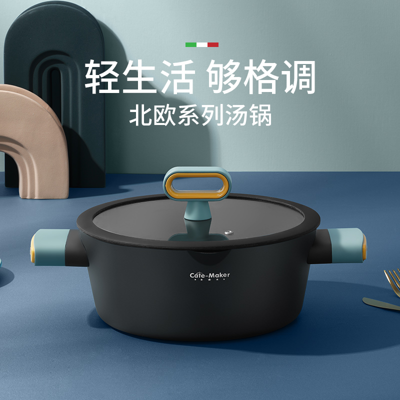 卡特马克北欧不粘汤锅麦饭石家用蒸煮炖燃气灶电磁炉通用不粘锅