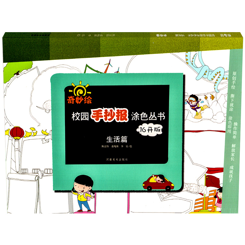 校园手抄报涂色丛书节日生活作业篇手绘16开版 全套3册儿童创意绘画幼儿涂色鸦小学生原创奇妙空白模板黑板报设计书河南美术出版