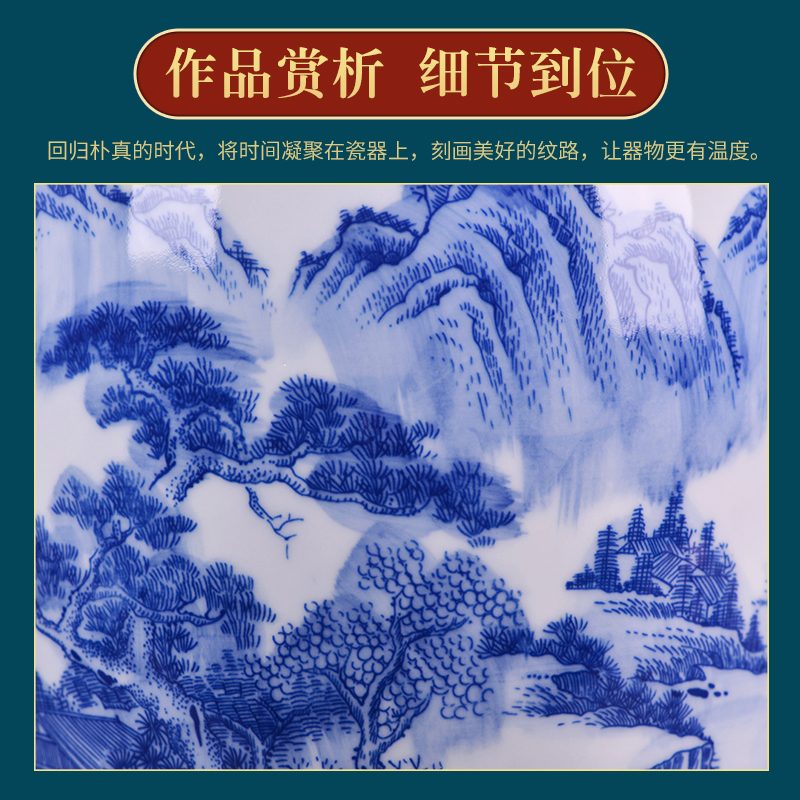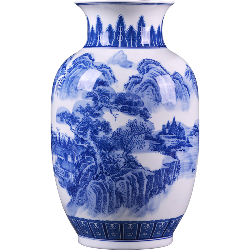 景德镇陶瓷花瓶青花山水薄胎瓷瓶仿古中式 饰品摆件 家居客厅插花装