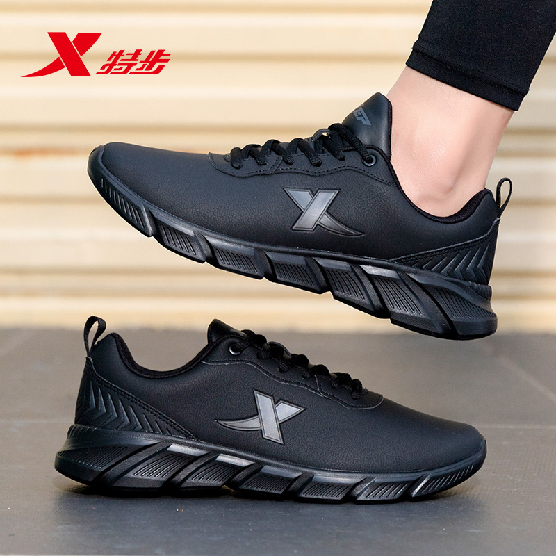 减震轻便跑步鞋 防泼水跑鞋 子男鞋 皮面运动鞋 秋冬新款 特步轻悦3