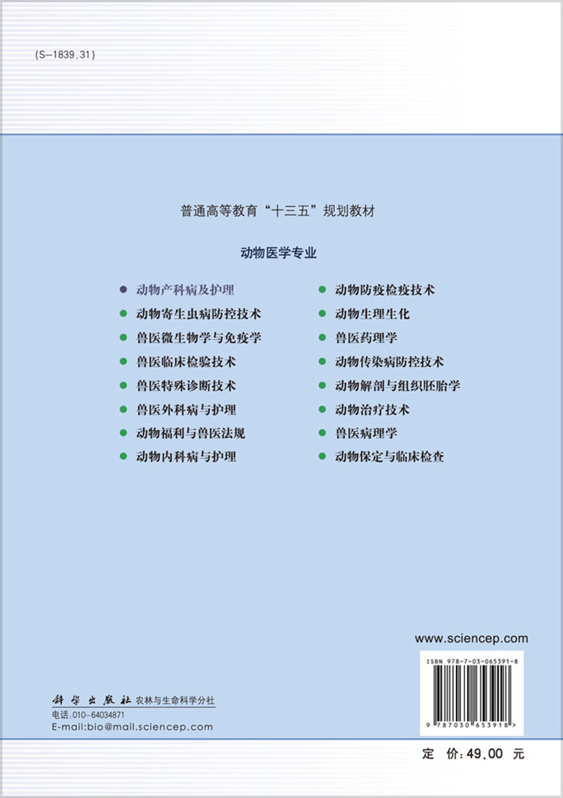 现货 社9787030653918 普通高等教育十三五规划教材动物医学专业动物产科病及护理科学出版