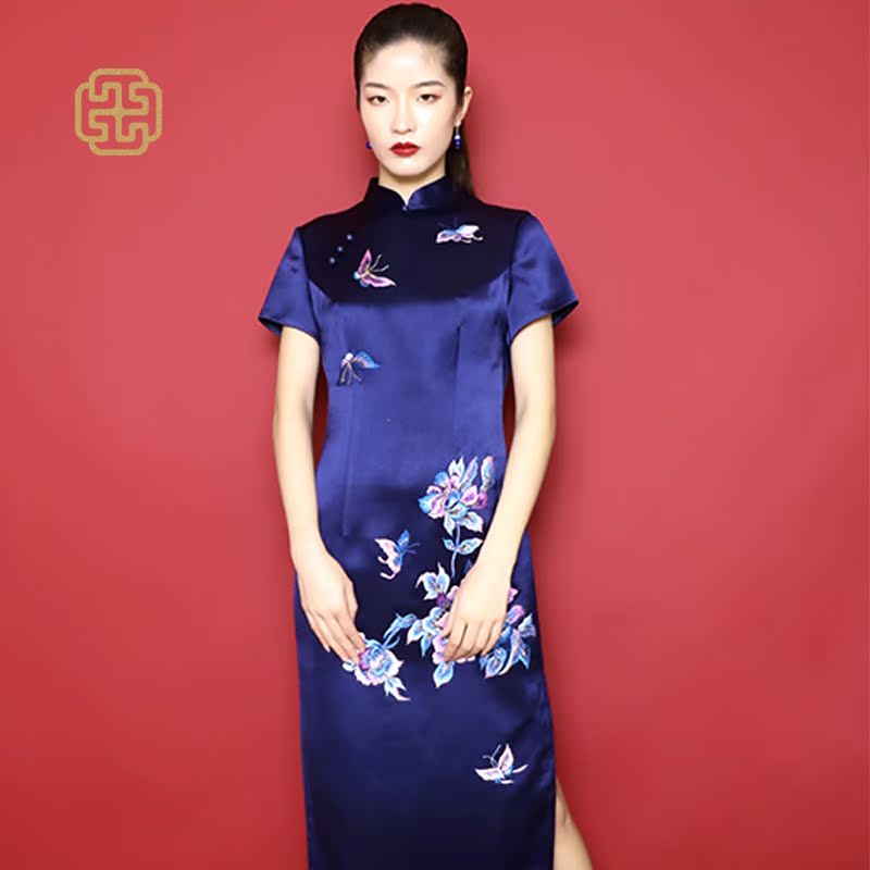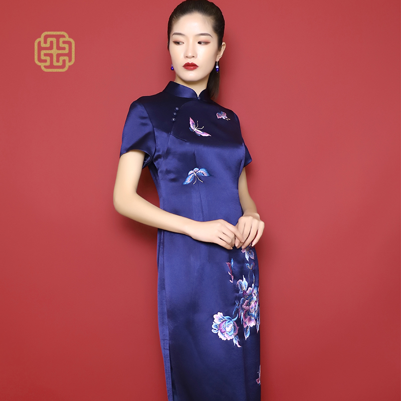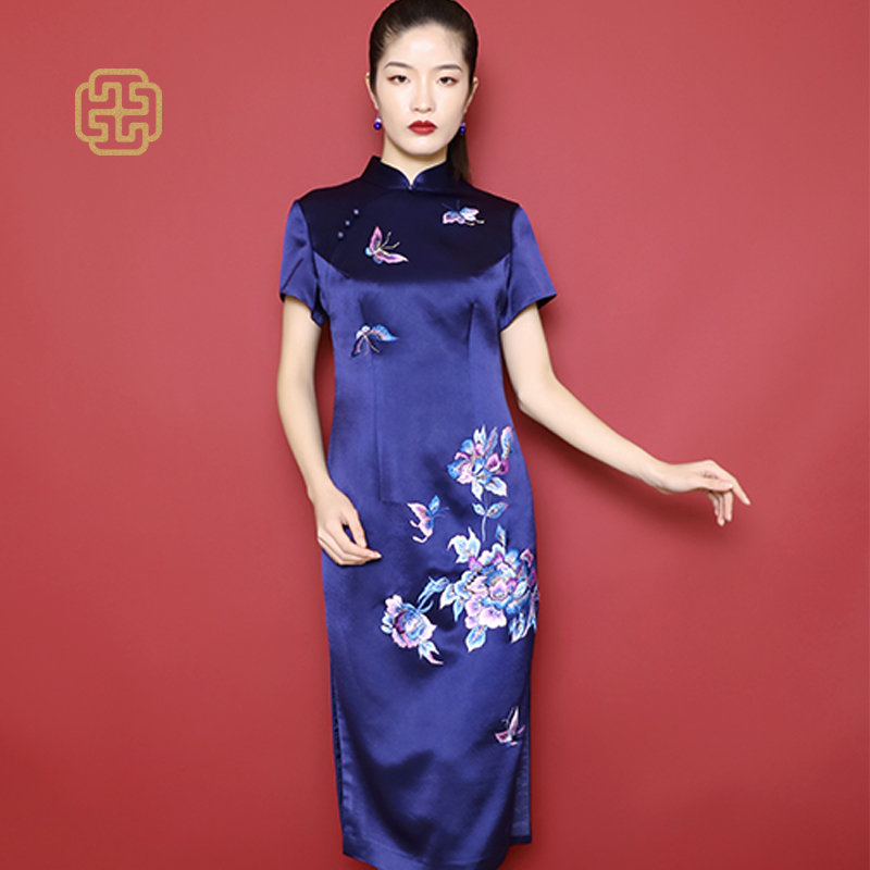 如意风奥黛新中式 改良旗袍女收腰显瘦日常中国风高端连衣裙23R159