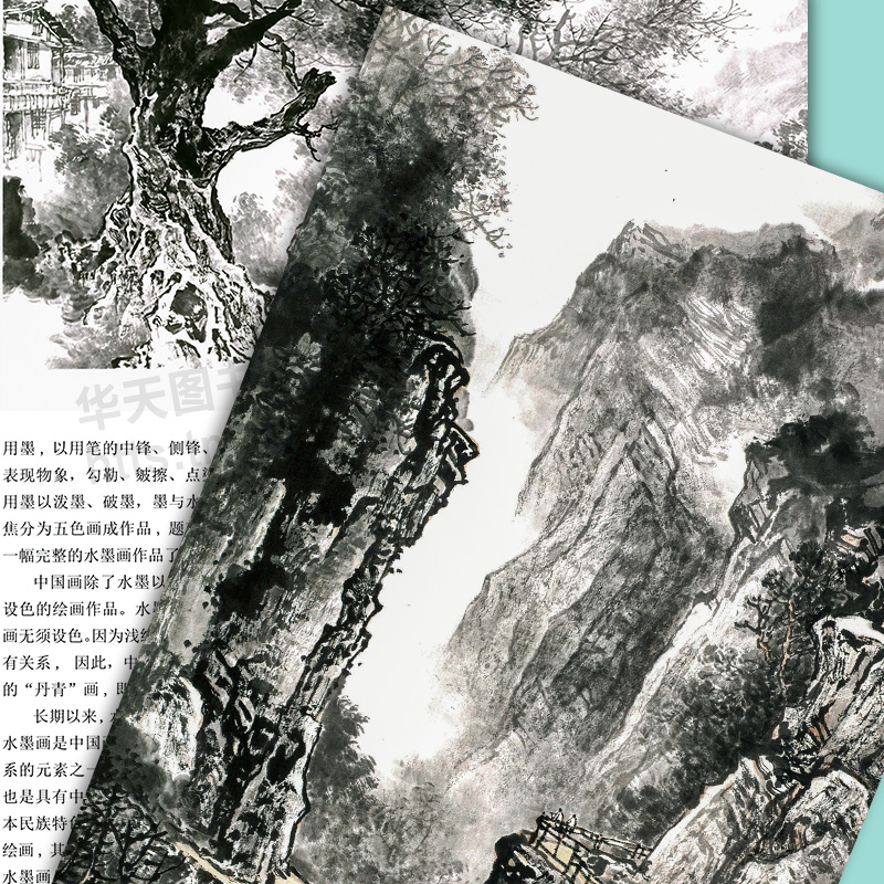 中国画教学画稿青绿山水水墨画绘画技法入门进阶临摹画集书籍天津人民美术出版 大8开三册 施云翔山水画集范图青绿篇浅绛篇水墨篇