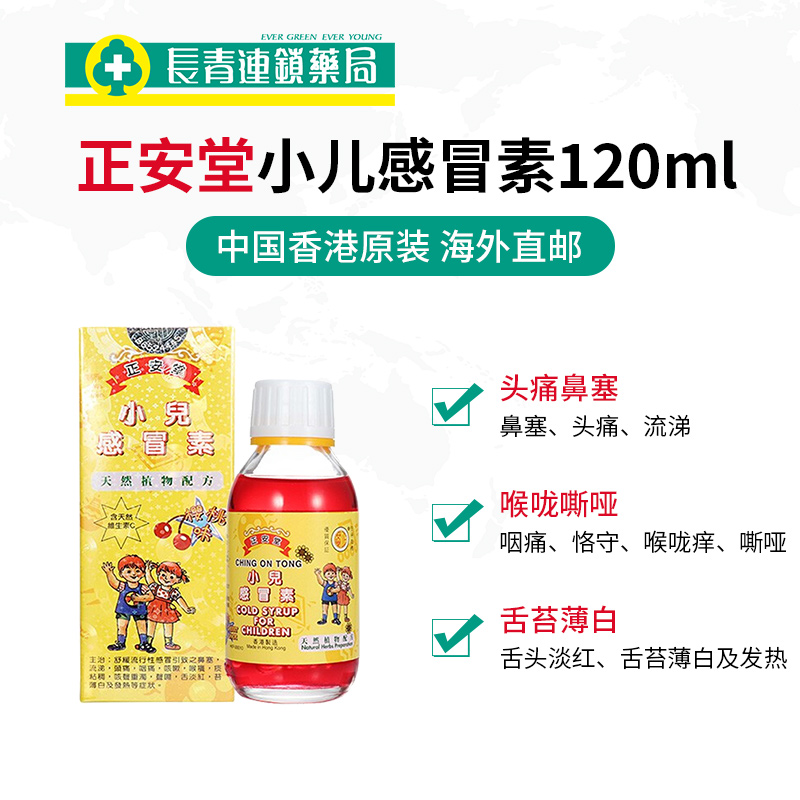 香港正安堂小儿感冒素120ml止咳嗽化痰糖浆儿童感冒药流鼻涕鼻塞