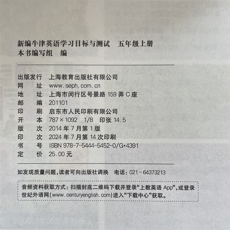 五年级上册 名师精选紧扣单元 A扫码 5年级第一学期 同步测试卷真题测试 听录音 新编牛津英语学习目标与测试