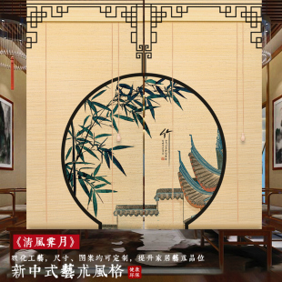 新中式 竹帘卷帘隔断帘户外遮阳帘茶室挂帘窗帘古风凉亭阳台遮光帘