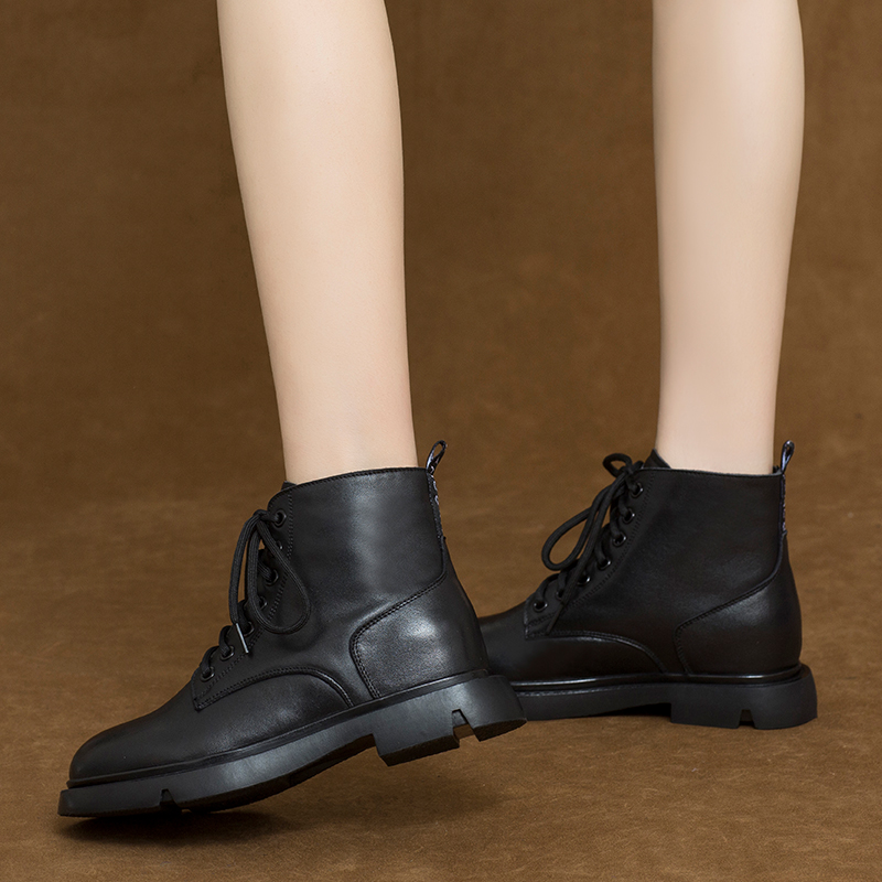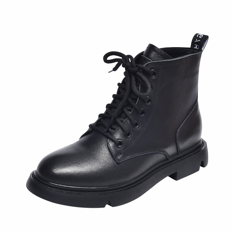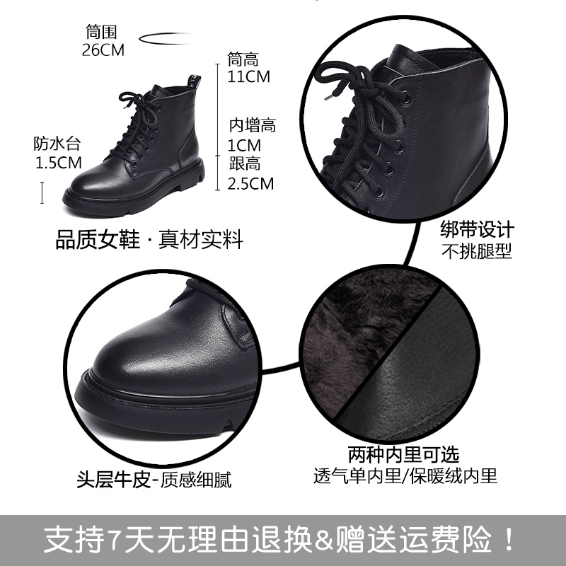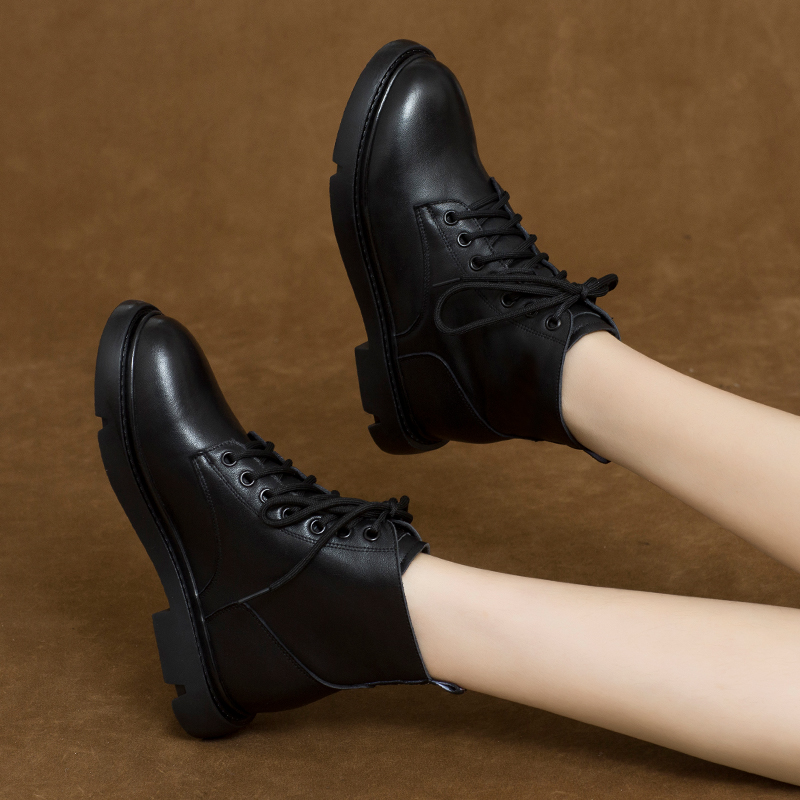 黑色增高靴子女时尚 新款 休闲皮面短靴 2025秋季 环球厚底马丁靴女款