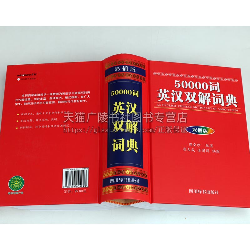 四川辞书出版 初高中学生工具书英语字典中高考外语学习词汇大学四六级教辅畅销书籍 彩插版 50000词英汉双解词典