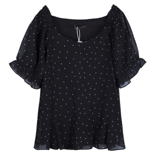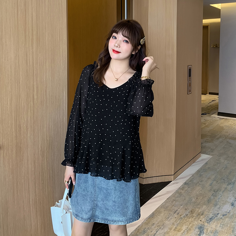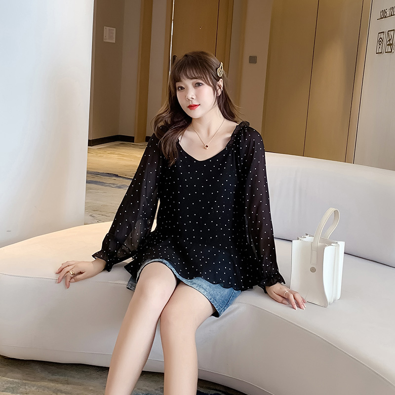 圆点V领显瘦百搭胖mm上衣女短袖 2023夏季 雪纺衫 大码 宽松遮肉 新款