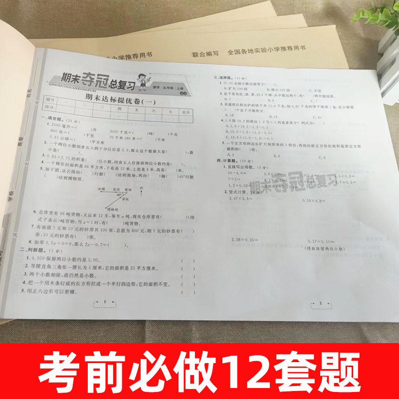 英语123456年级上下册试卷测全套人教版 数学冀教版 语文人教版 一二三四五六年级考前必修12套卷衡石文化 期末夺冠总复习