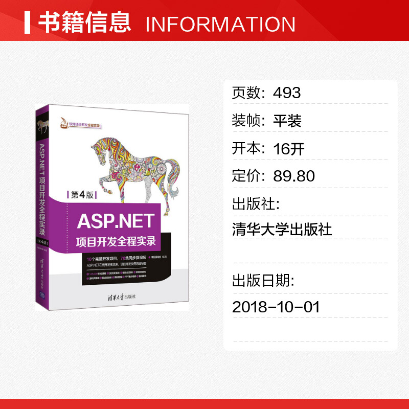 正版 明日科技 书籍 新华书店旗舰店文轩官网 社 ASP.NET项目开发全程实录 清华大学出版 第4版