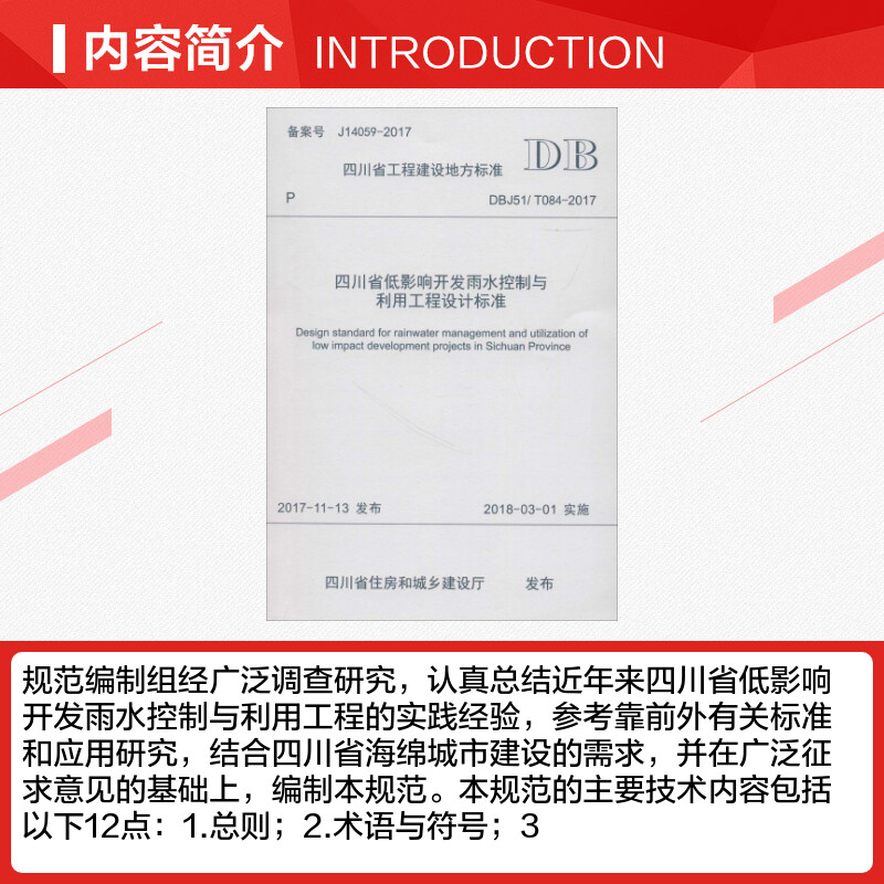主编 著 建筑 四川省低影响开发雨水控制与利用工程设计标准 新 成都市市政工程设计研究院 水利 四川省建筑设计研究院