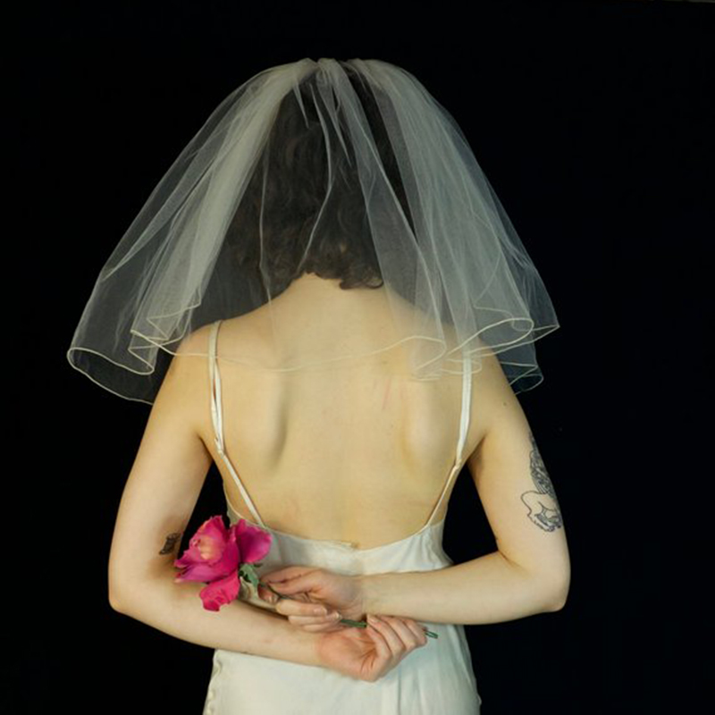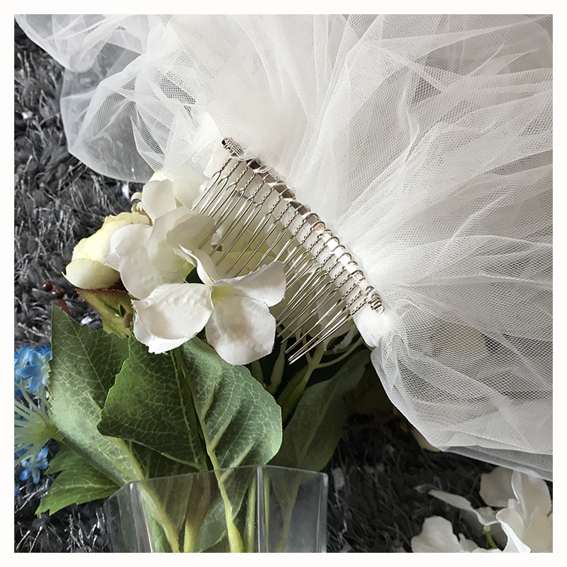 新娘头纱韩式 婚纱头纱旅拍面纱简约蓬蓬婚礼头饰 双层素纱遮面短款