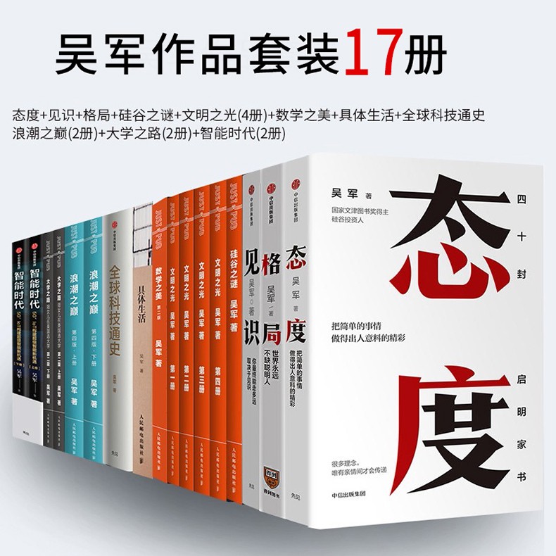 智能时代文明之光全四册数学之美硅谷之谜浪潮之巅全球科技通史吴军 正版 大学之路 态度见识格局 书三部曲 吴军书籍全套全集17册