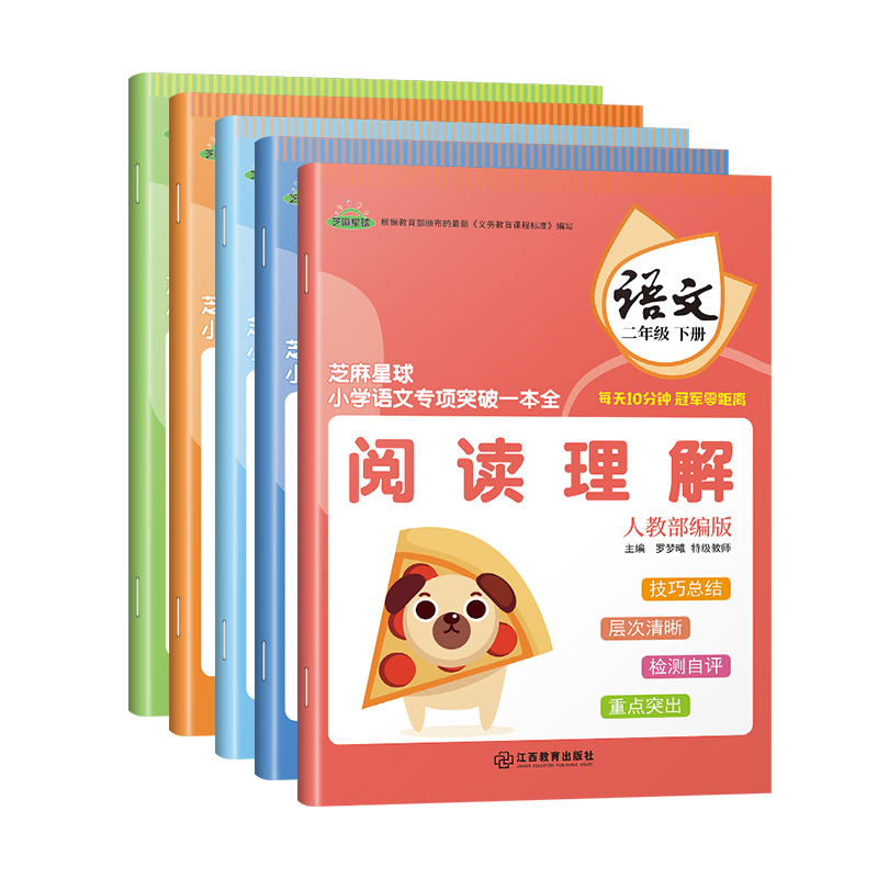 芝麻星球小学语文专项突破一本全 阅读理解等 二年级语文下册 全册5本 生字注音小学语文课后专项练习 人教部编版 正版