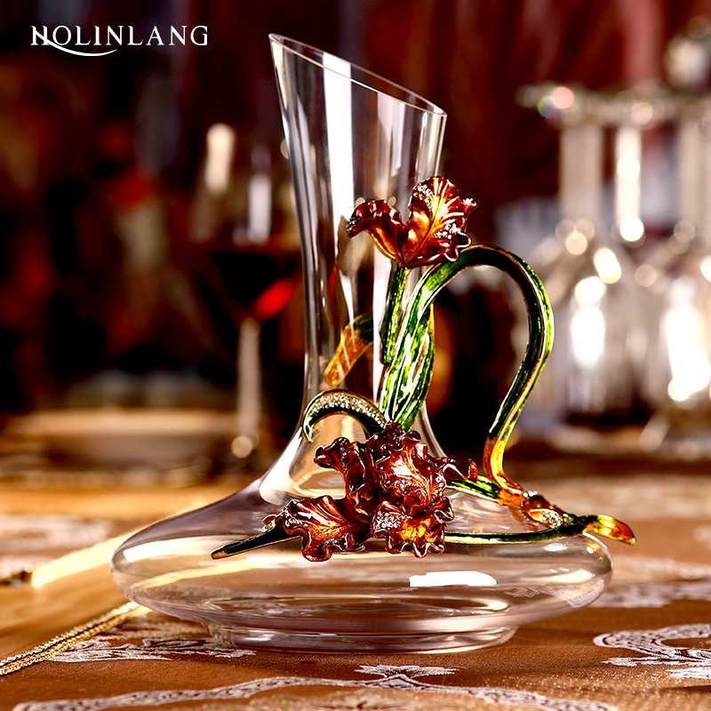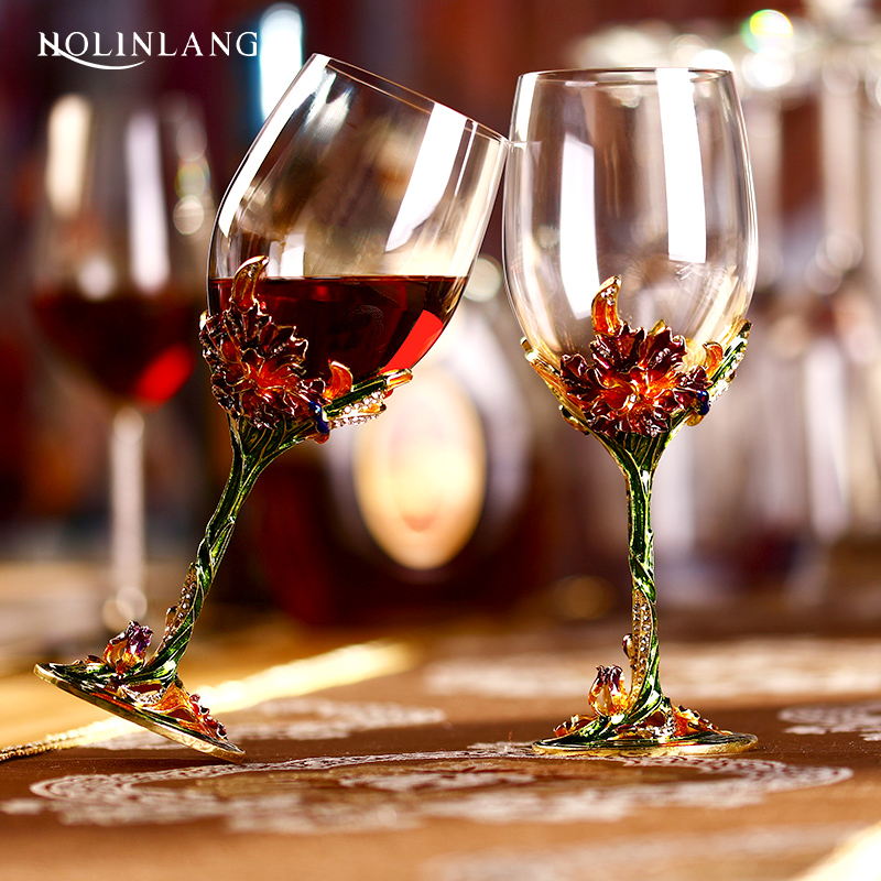 欧式 家用玻璃高脚杯葡萄酒杯2个 珐琅彩水晶红酒杯醒酒器套装