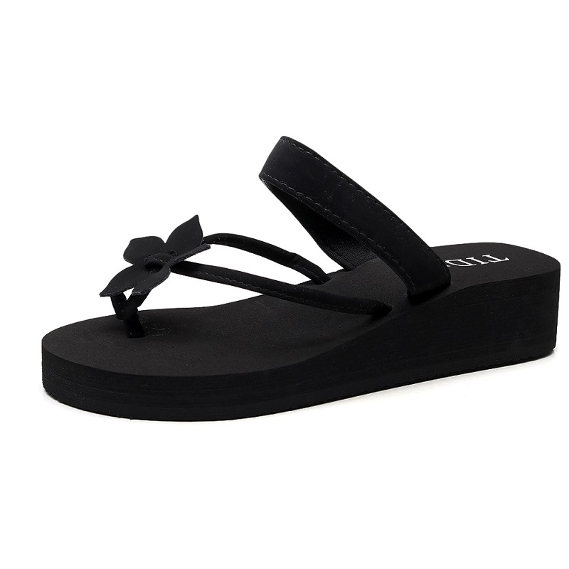 海边花朵学生人字拖 外穿防滑夹脚坡跟厚底沙滩凉拖鞋 拖鞋 女夏时尚