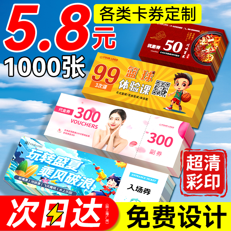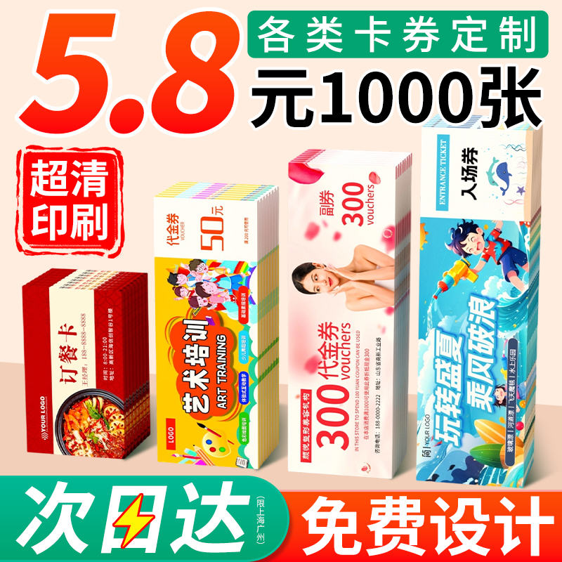 代金券定制优惠券订制作抽奖券体验卡片抵用券入场券门票印刷美容院宣传售后卡打印免费设计 广告提货卡片 包邮