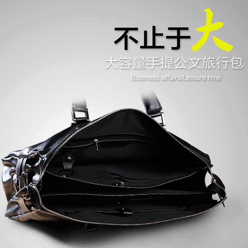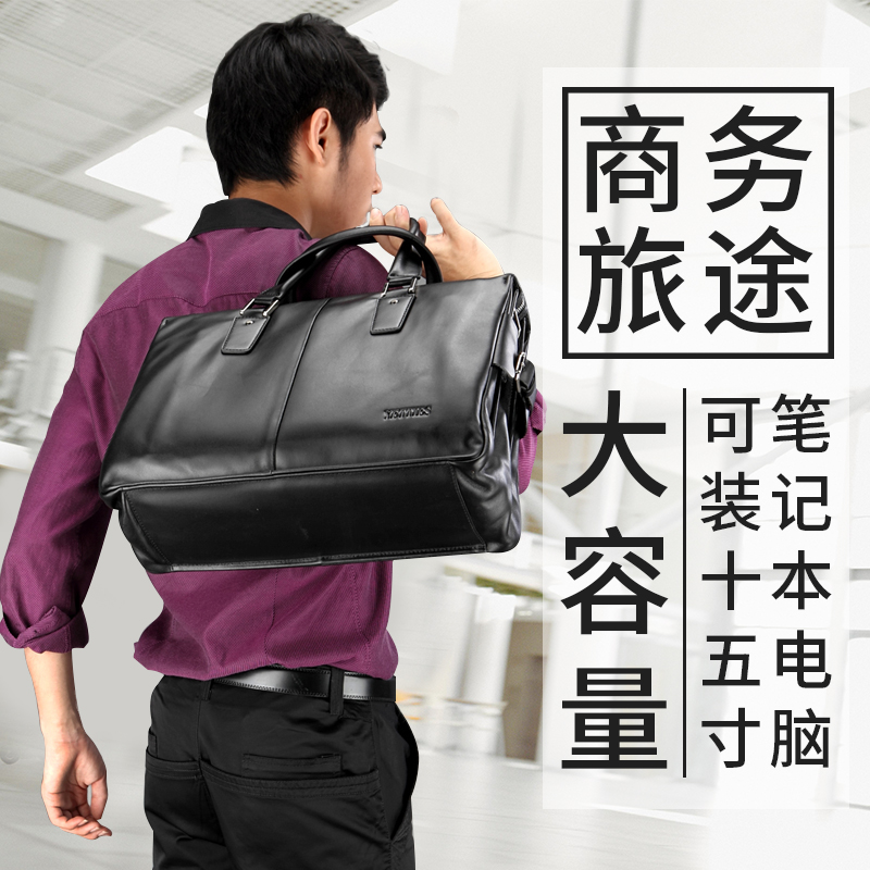 男士 公文包大容量商务出差旅行包15.6电脑包 真皮手提包律师包横款