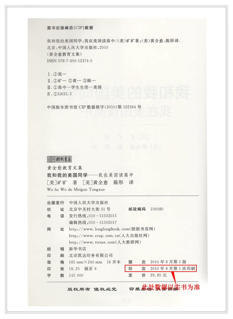 黄全愈 9787300123745 社 中国人民大学出版 陈彤译 矿矿著 美国同学:我在美国读高中 我和我 包邮 正版
