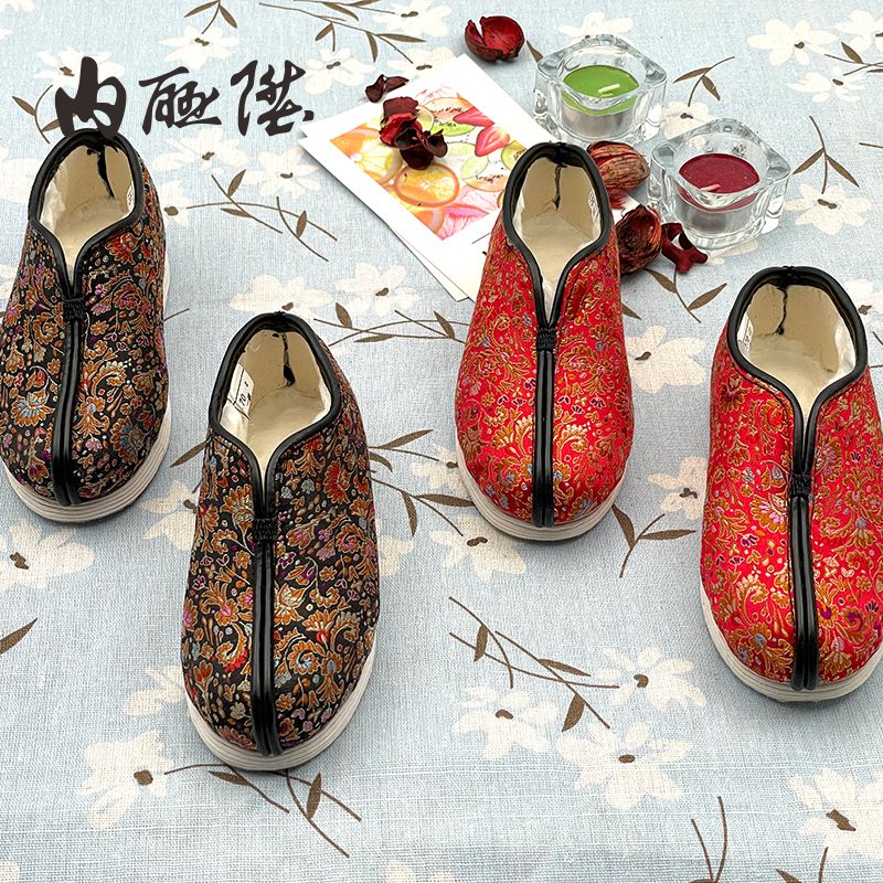 机纳织锦缎手工千层底儿童棉鞋 内联升童鞋 加绒棉鞋 冬季 5411C 布鞋
