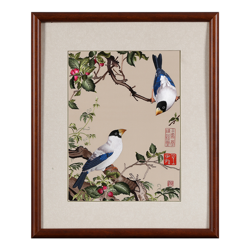 顾氏苏绣郎世宁花鸟手工刺绣单面绣餐厅书房中式 客厅卧室礼品挂画