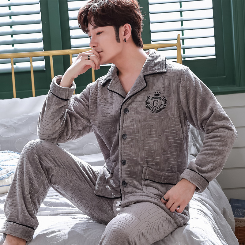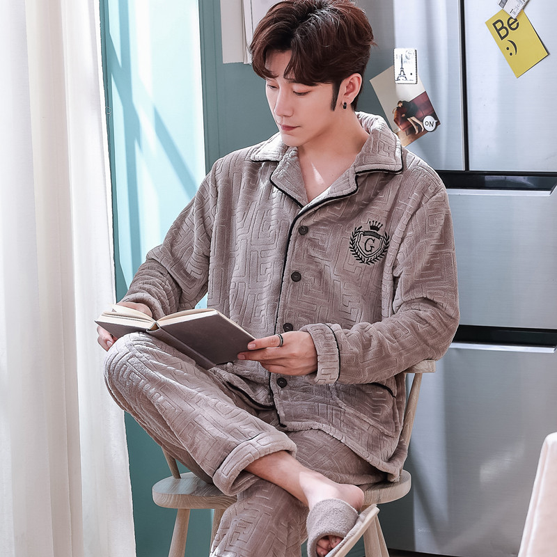 保暖法兰绒家居服冬天套装 睡衣男士 珊瑚绒加绒加厚冬款 长袖 秋冬季