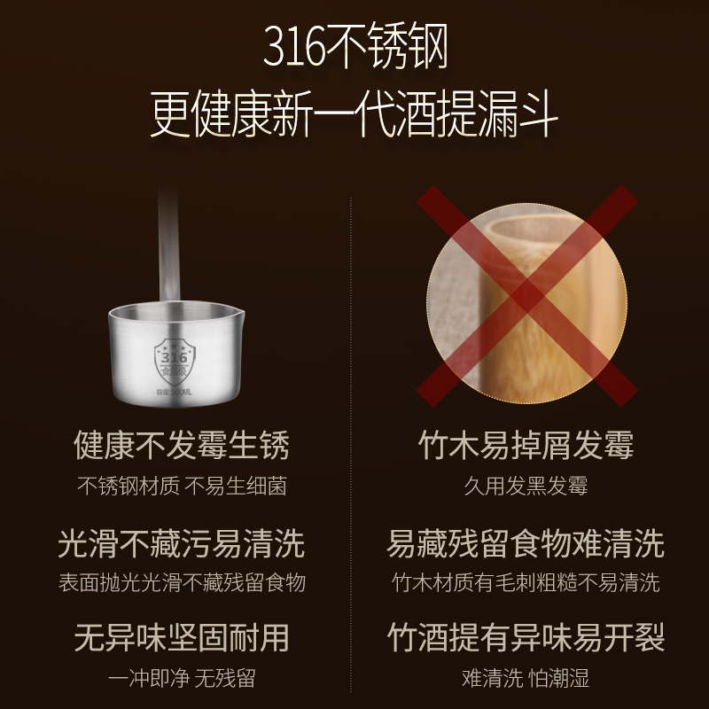 厨房漏斗家用316不锈钢打油酒勺子长柄装 取端盛舀取吊滤酒提神器