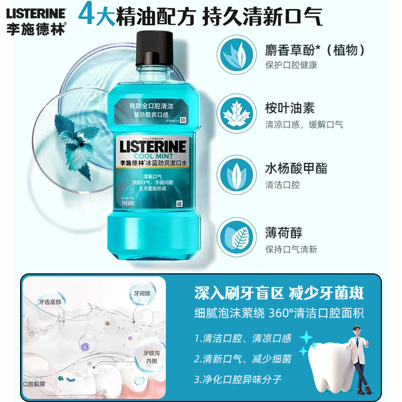 李施德林漱口水减少口臭无杀菌持久留香含漱液男女官方旗舰店正品