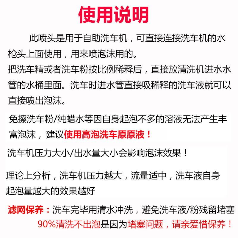 自助洗车高压清洗机洗车泡沫枪全铜加厚25° 扇形喷嘴 可调节固定