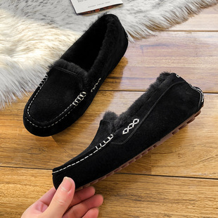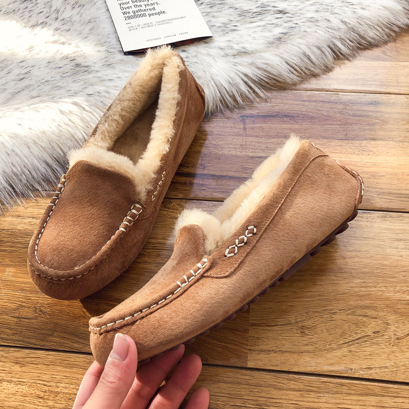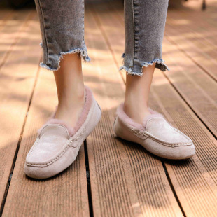 孕妇防滑瓢鞋 女冬软底单鞋 浅口平底鞋 AΖUGGОNE羊皮毛一体豆豆鞋