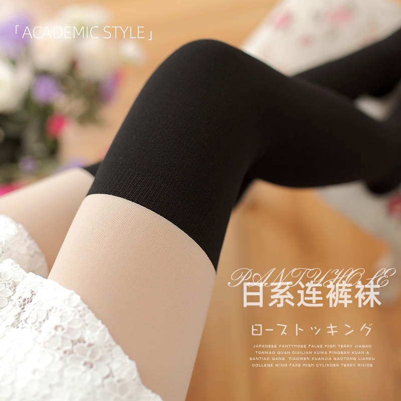 丝袜黑色大腿袜日系连裤 JK袜子女薄款 袜 假长筒过膝袜条纹款 春秋季