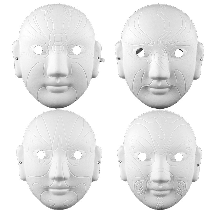 diy手绘纸浆京剧脸谱面具白胚涂鸦压痕白色制作面罩