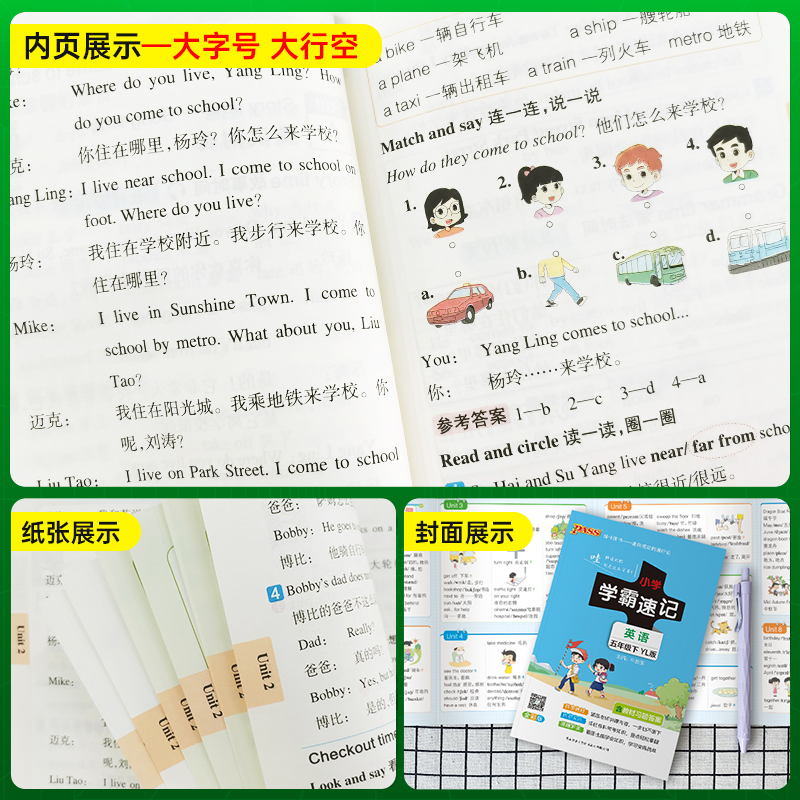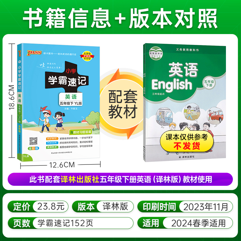 2024春新版 知识点汇总速查速记知识点提要同步解读复习知识点考试前背诵便携工具书PASS绿卡图书 小学学霸速记五年级下册英语译林版