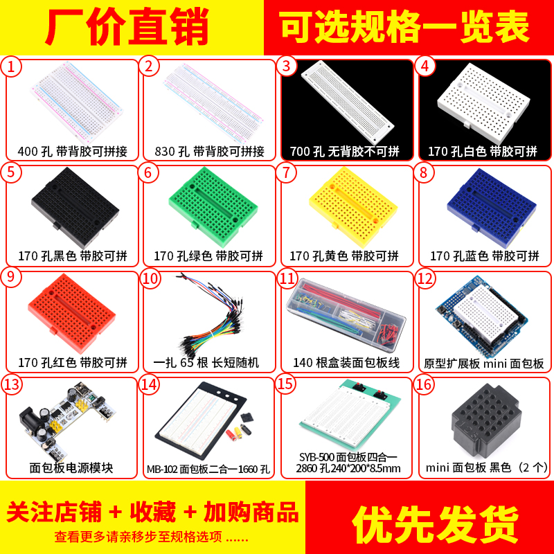 102电路板洞洞板实验板可组合拼接830孔 400孔面包板线SYB 500