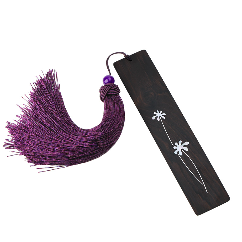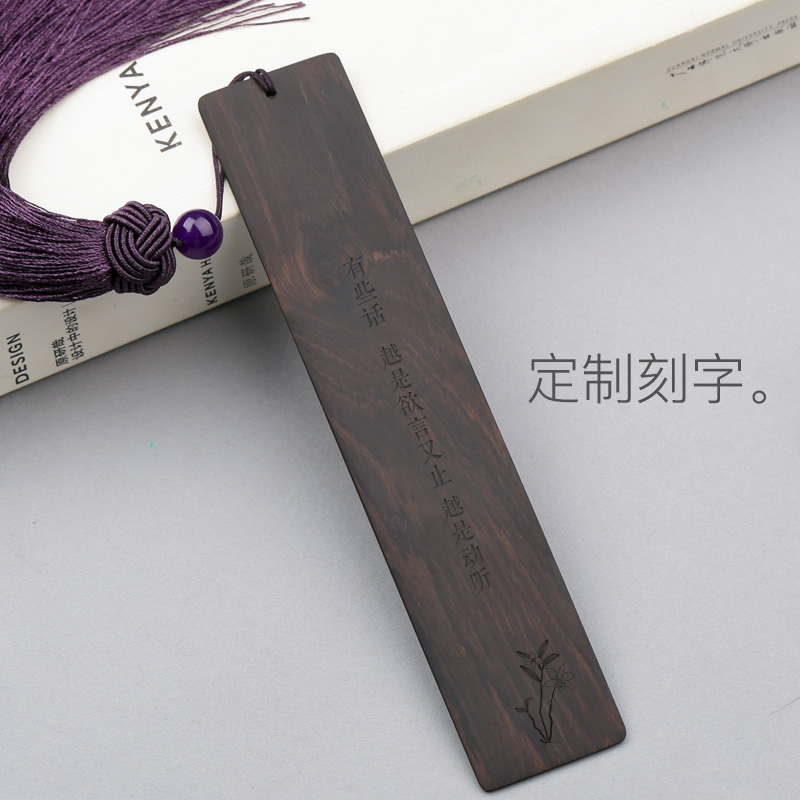 精美实木制嵌贝教师节流苏古风礼品 中国风创意黑檀木质定制刻字实用小礼物 嵌银丝纯银红木书签礼盒装 纪念品