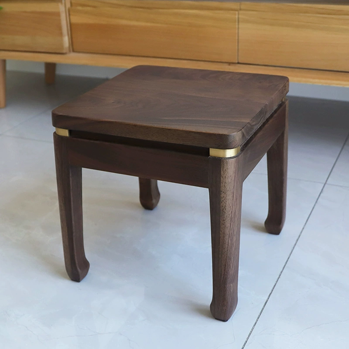 实木黑胡桃小板凳家用儿童换鞋 进口矮凳黄铜配饰小木凳子 凳新中式