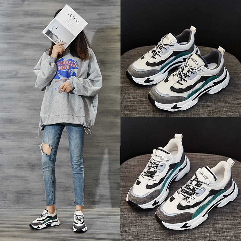 百搭休闲跑步鞋 鮀品运动鞋 厚底小白鞋 加绒轻便老爹鞋 子 女秋冬新款