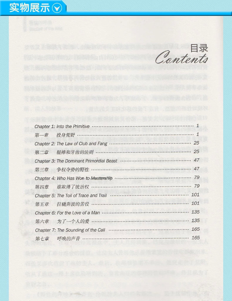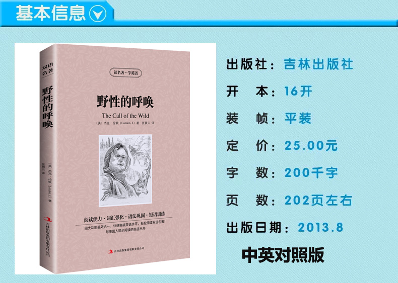 呼唤 又 杰克伦敦 包邮 英汉对照读物中英文双语世界中小学生英语书籍读名著学英 英文版 野性 中文版 荒野