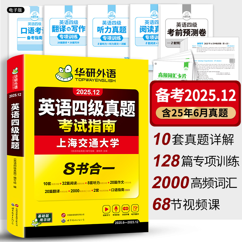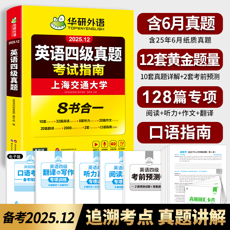 华研外语英语四级真题八合一考试指南2025年12月大学英语四级历年真题预测模拟试题词汇专项训练书cet4级 备考2025.12新试卷