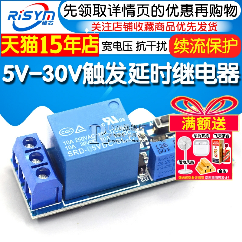 30V触发延时继电器模块定时器模块 延时开关 宽电压 Risym
