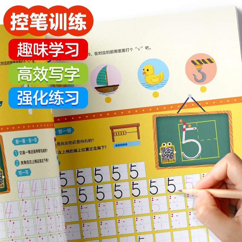配视频动画 华夏万卷幼儿练字贴 幼小衔接启蒙字帖带卡通贴纸练习本习字本 6岁数字描红本幼儿园大班儿童写字本控笔训练