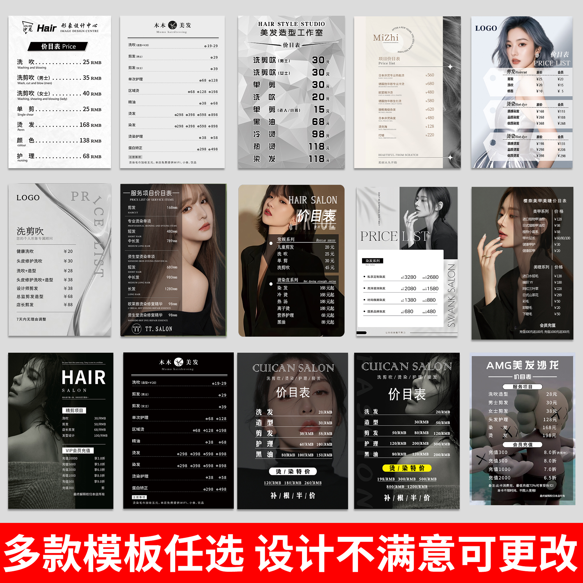 理发店价目表价格表定制美发店价目表挂墙亚克力发廊价格展示牌hb