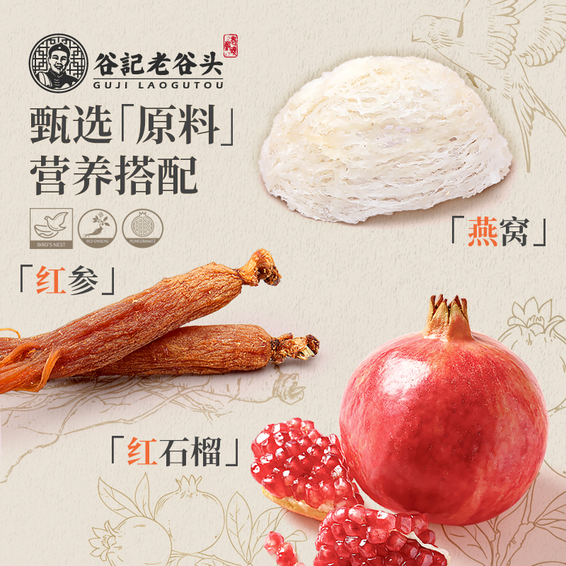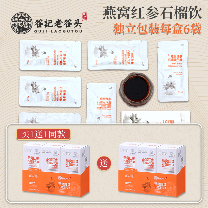 老谷头燕窝红参石榴饮人参皂甙石榴红参液袋装 女性礼盒360ml