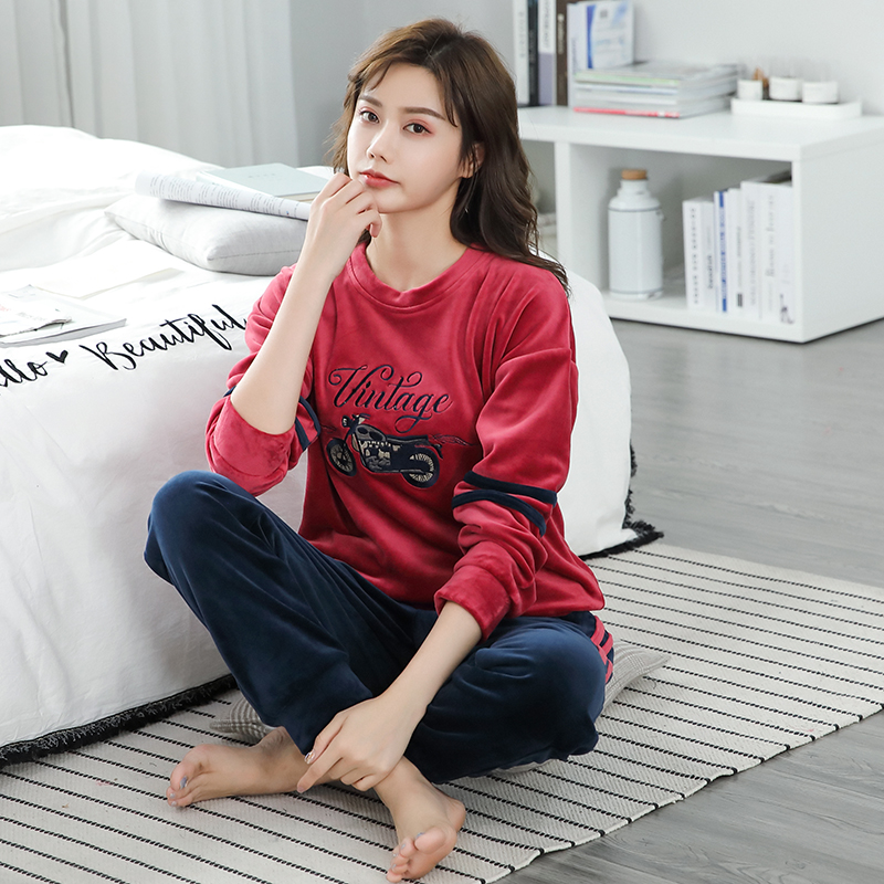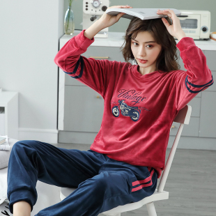 海岛绒可外穿家居服 简约薄款 睡衣女秋冬季 保暖珊瑚绒女士睡衣套装