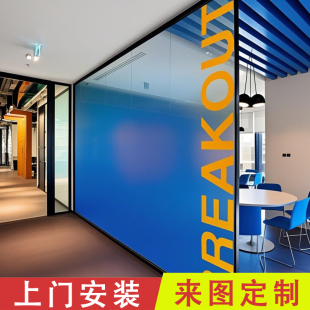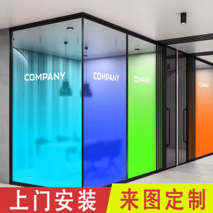 玻璃门贴纸防撞条腰线办公室透明磨砂镂空广告贴膜定制公司logo字
